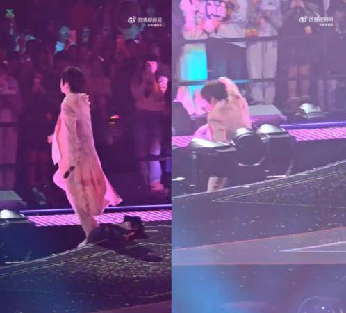 阿信摔落两米高舞台。(图/翻摄自微博)