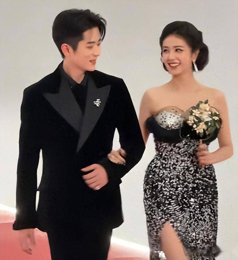这一次的星光大赏上,白鹿穿着一袭黑底繁花长裙和丞磊携手走红毯。