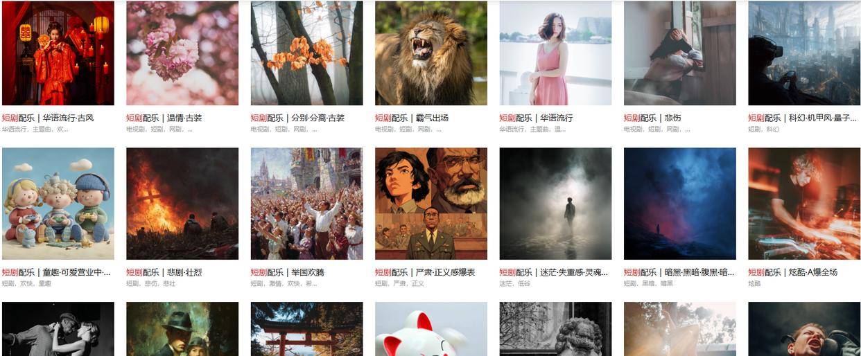 • 高清音质与丰富曲库打底:曲库规模超千万首,汇聚索尼音乐、artlist音乐等国际顶级厂牌及上万名独立音乐人原创作品,所有曲目均达到高清音质标准,杜绝杂音、音质模糊等问题。风格覆盖国风国潮、欧美流行、电子、轻音乐等全品类,从古风短剧的悠扬笛箫到现代现偶的浪漫旋律,从悬疑剧的紧张音效到喜剧的轻快节奏,均可精准匹配。