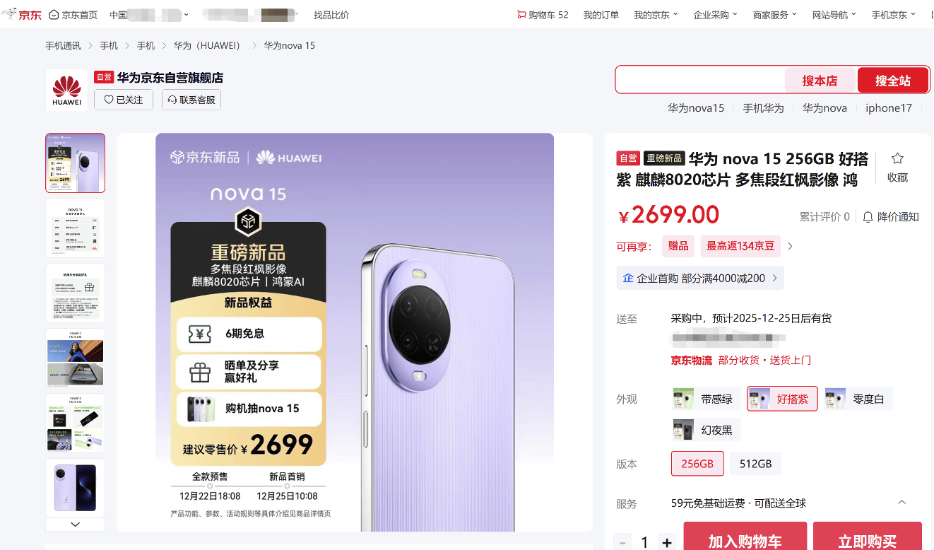 2699元起!来京东参与华为 nova 15系列预售享6期免息(来京哪里)