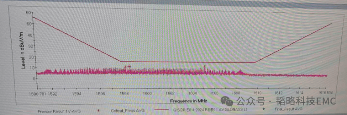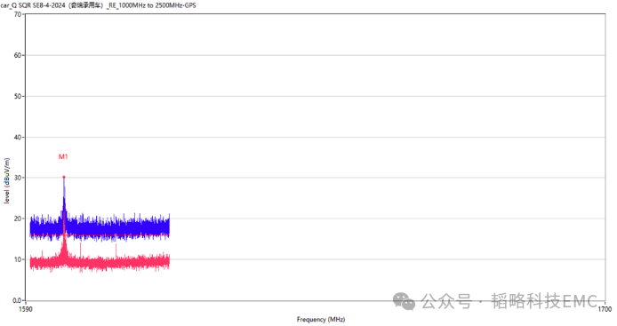 产品测试问题点在1G以上的频段,频点为1597M。通过排查我们发现只要插了视频线就会存在这个频点,然后近场频谱测试把问题锁定在SOC输出的视频信号到串行器 (SERializer)这一部分存在对应频点。