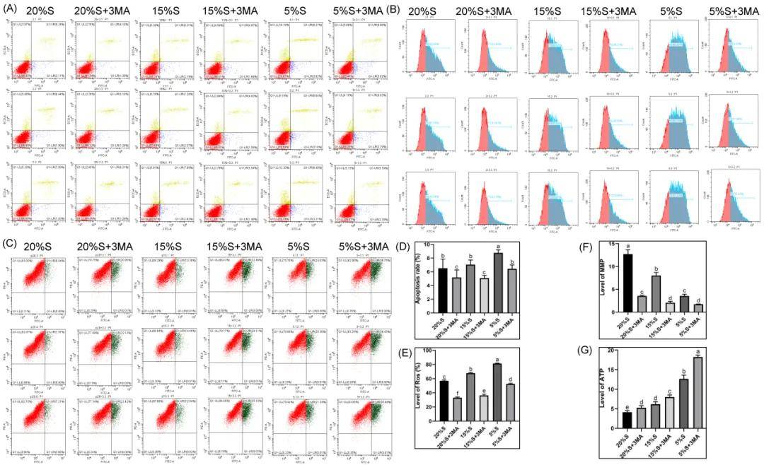 在血清饥饿条件下,SMSCs细胞代谢、凋亡、氧化应激和自噬都受到显著影响。血清饥饿通过增加凋亡率、ROS水平和降低线粒体膜电位,导致细胞代谢紊乱。自噬在饥饿应答中发挥关键作用,血清饥饿可以诱发和AMPK/mTOR通路相关的自噬发生,减缓了细胞对重度饥饿的负面反应。总体而言,自噬在细胞应对营养缺乏中的保护作用尤为重要,尤其在维持细胞功能和能量平衡方面。