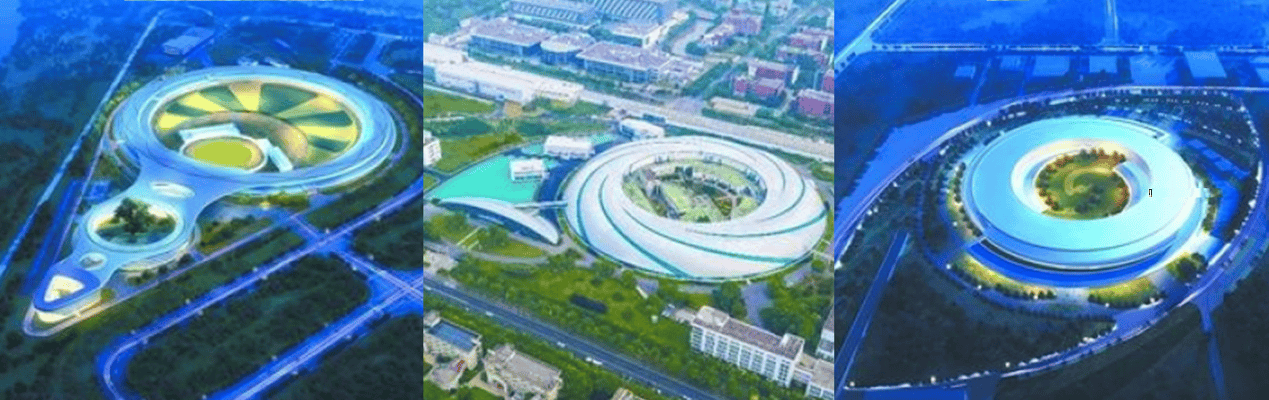 北京高能同步辐射光源(HEPS)中:上海同步辐射光源(SSRF)右:合肥先进光源(HALF)